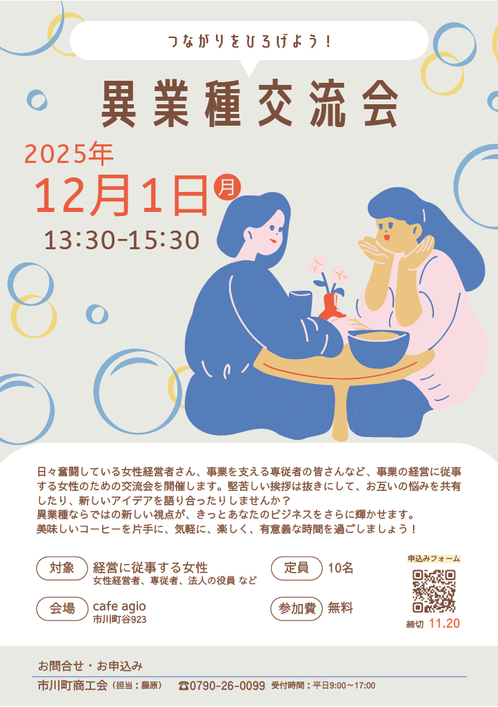 日々奮闘している女性経営者さん、事業を支える専従者の皆さんなど、事業の経営に従事する女性のための交流会を開催します。堅苦しい挨拶は抜きにして、お互いの悩みを共有したり、新しいアイデアを語り合ったりしませんか?